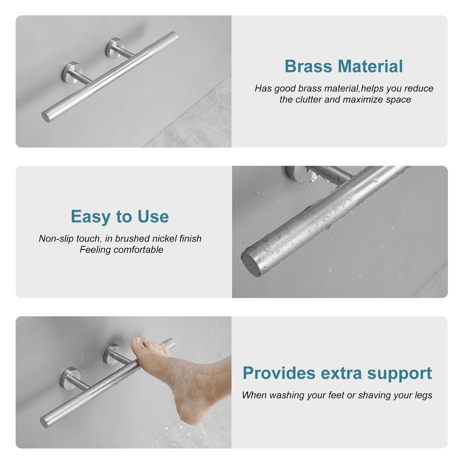 BWE Shower Foot Rest Brushed Nickel Wall Mount Shower Footrest for Shaving Legs Brass Bar Shower Step Foot Ledge Anti-Slip Shower Foot Ledge—
